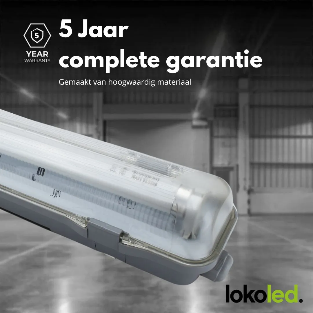 Deze LED TL Armatuur T8 120cm IP65 van LokoLED wordt geleverd met alle bevestigingsmaterialen en is geschikt voor 1 T8 LED TL Buis van 120CM. Het armatuur is gemaakt van hoge kwaliteit. Dit komt omdat de binnen en buitenkant van het armatuur gemaakt is van zeer stevig en slagvast kunststof en metaal.