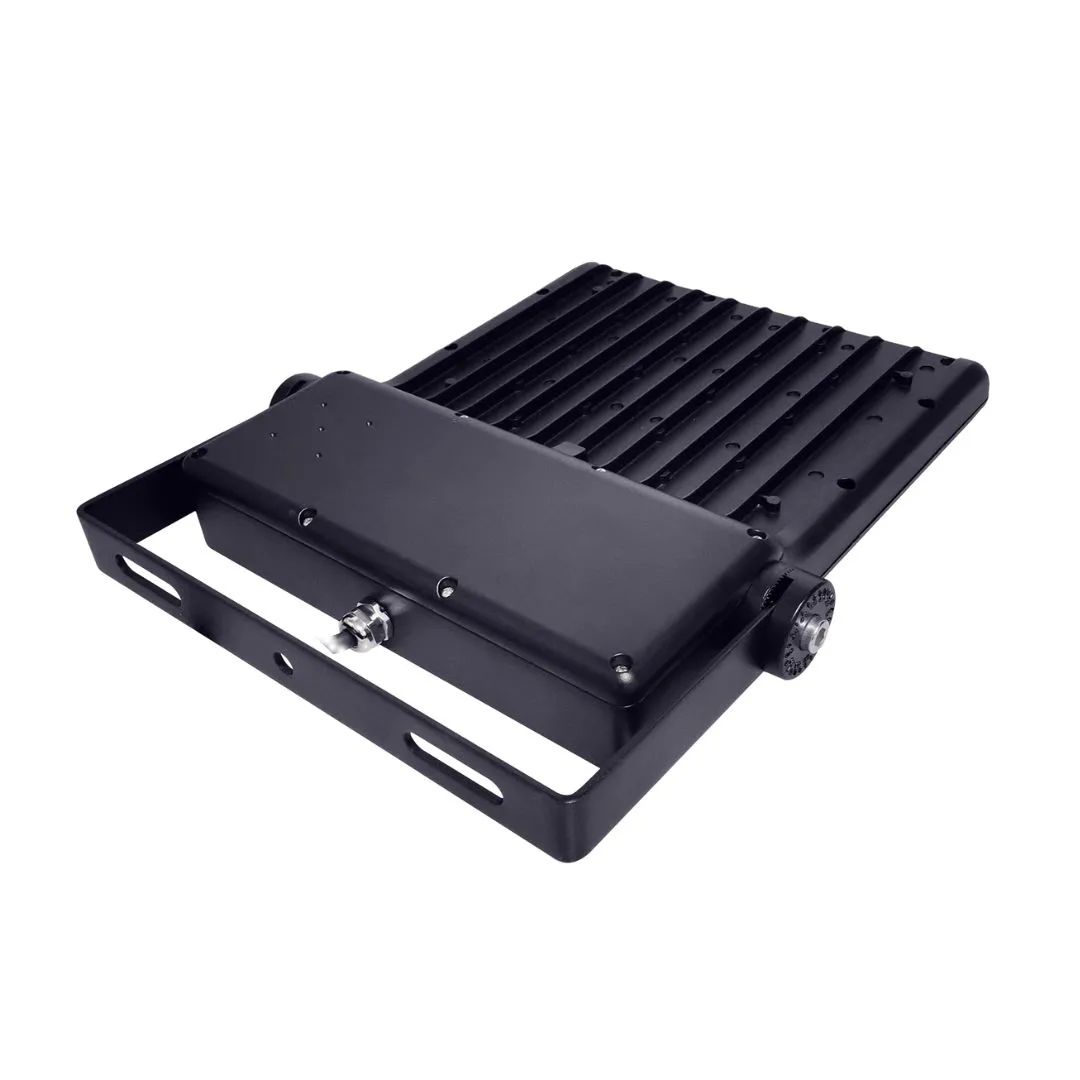 De behuizing is gemaakt van aluminium met een zwarte poedercoating en een geborsteld oppervlak, wat zorgt voor een duurzame afwerking. De transparante glasafdekking beschermt de LED’s en draagt bij aan een gelijkmatige lichtverdeling. Met een verstelbare montagebeugel kan de floodlight eenvoudig worden geplaatst aan wand, plafond, truss of vloer. Geschikt voor gebruik bij temperaturen van -30 tot 55 °C en ontworpen voor zowel binnen- als buitentoepassingen.
