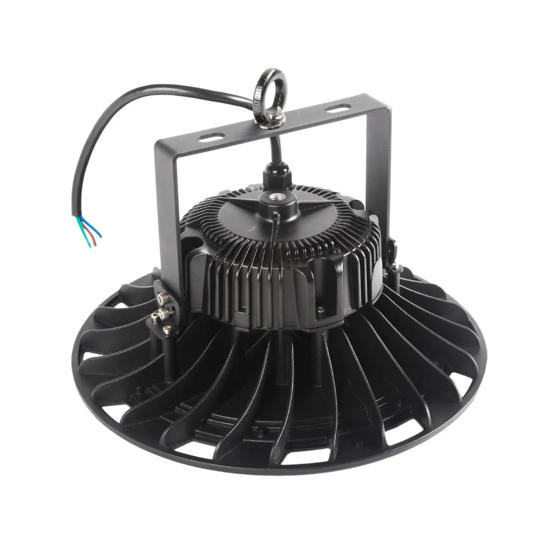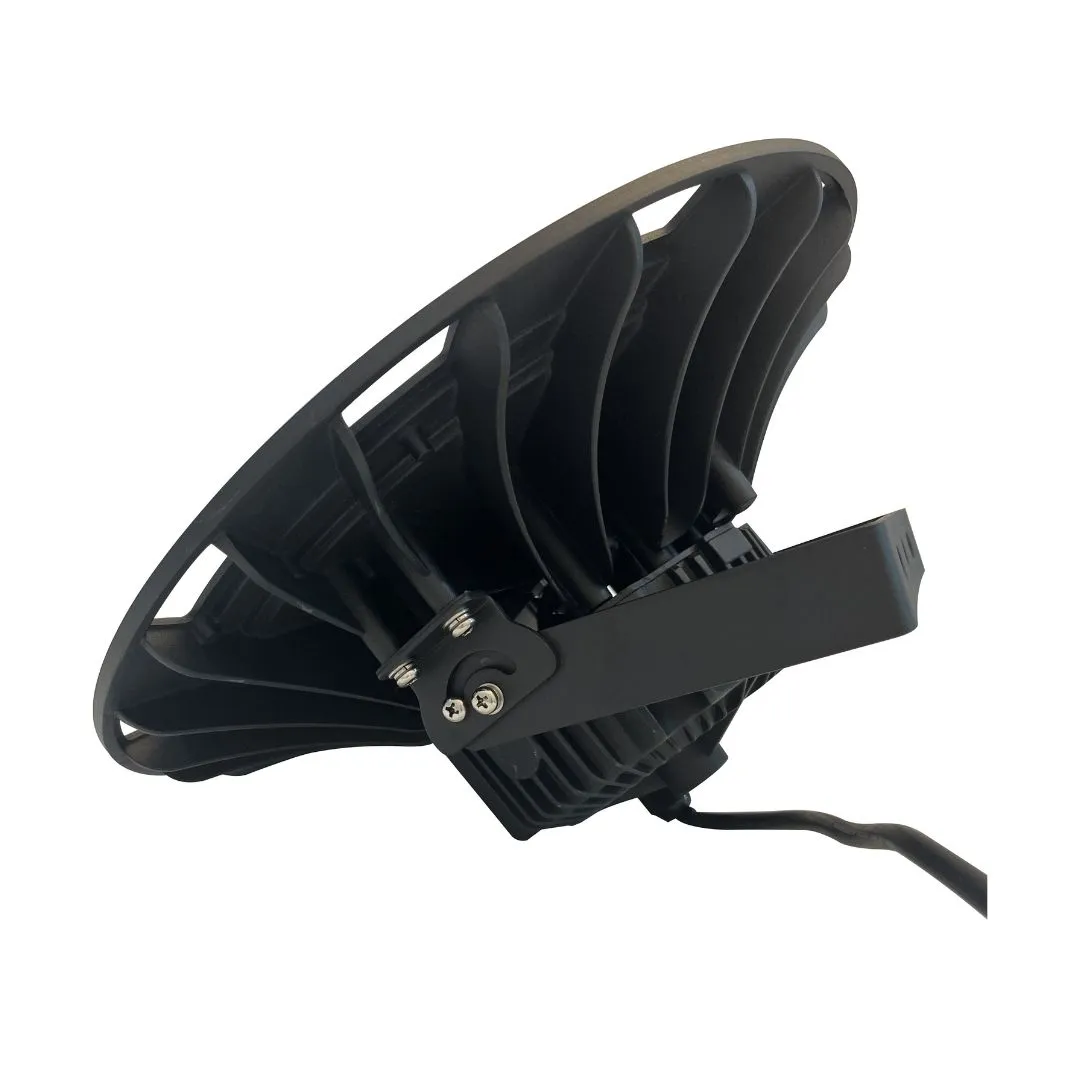 De behuizing is vervaardigd uit zwart aluminium met een speciale coating die extra bescherming biedt tegen stof en vocht. Dankzij de IP65-classificatie is de armatuur geschikt voor zowel binnen- als buitengebruik. De Highbay kan worden gemonteerd aan plafond, wand of via pendelophanging. Het geïntegreerde elektronische voorschakelapparaat zorgt voor een stabiele werking binnen een spanningsbereik van 90 tot 305 volt.