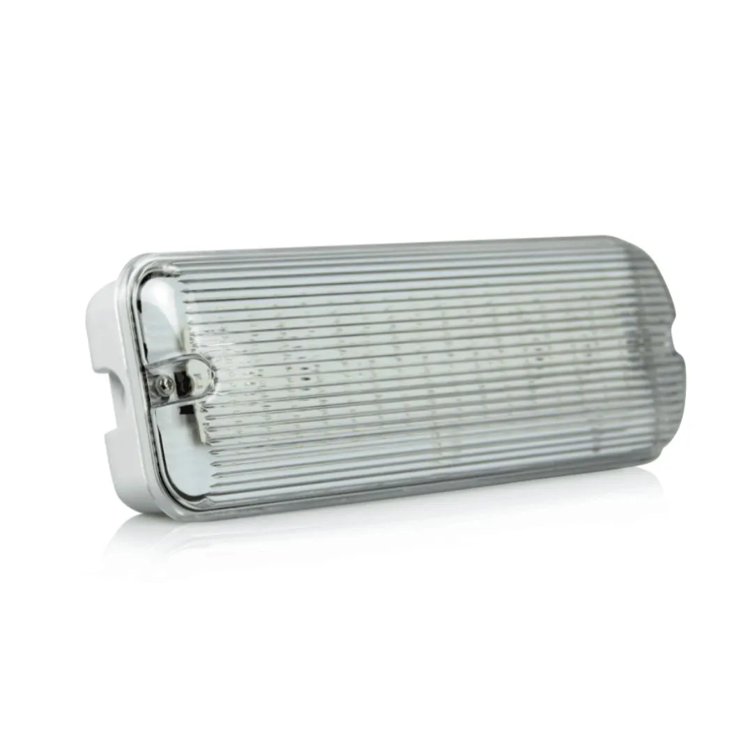 Met een beschermingsgraad van IP65 en slagvastheid IK08 is deze noodverlichting bestand tegen stof, vocht en stoten, waardoor ze ook geschikt is voor veeleisende binnen- en buitentoepassingen. De armatuur werkt op 220–240 V AC en beschikt over een interne NiCd-accu voor noodbedrijf. Dankzij de automatische zelfdiagnose wordt de werking van het noodsysteem continu bewaakt. De lichtkleur is instelbaar tussen 3000 K en 6000 K (CCT), met een lichtopbrengst van 196 lumen in noodmodus en een herkenningsafstand van 20 meter.