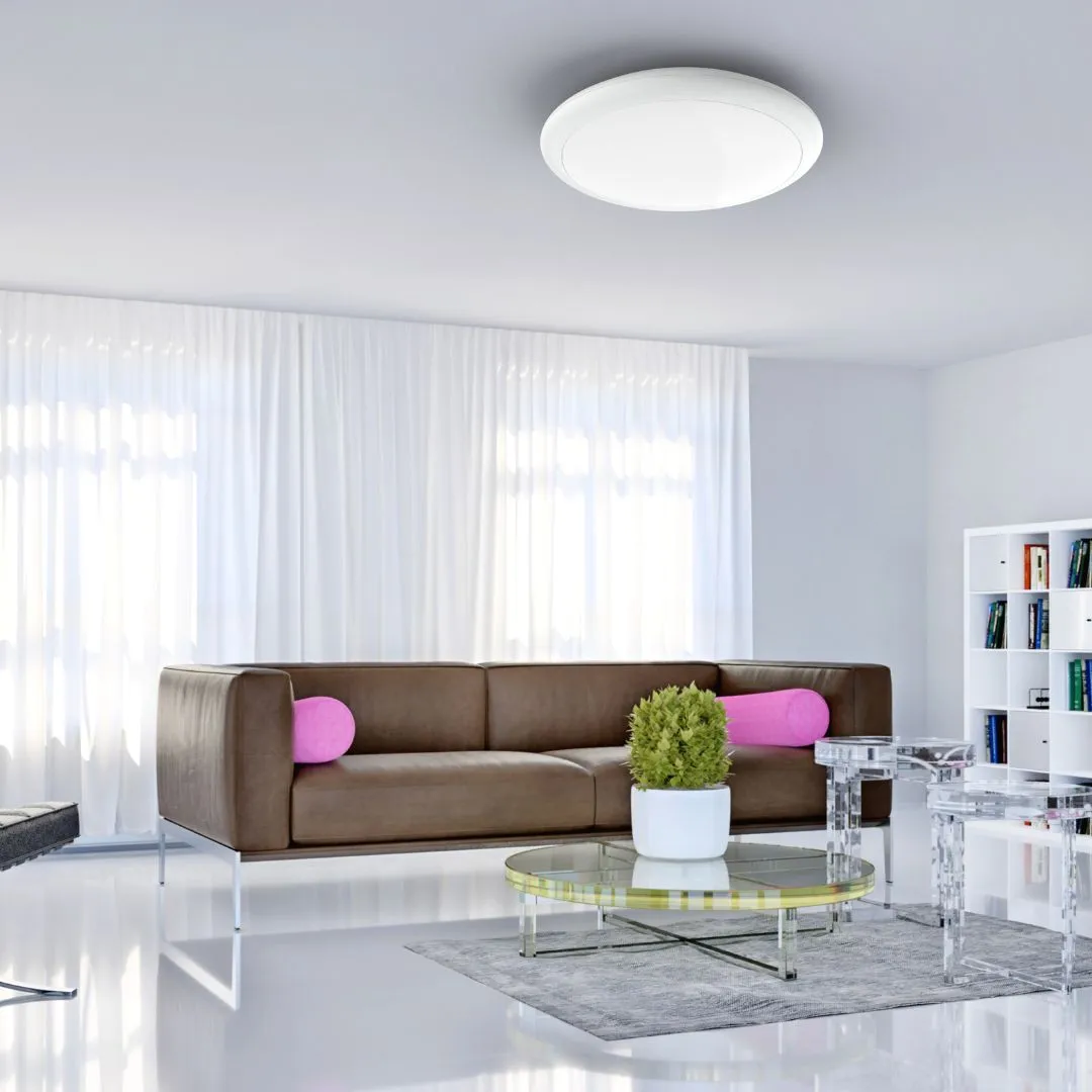 Deze ronde opbouwarmatuur in XXL-formaat combineert een strak ontwerp met praktische functionaliteit. De armatuur is geschikt voor zowel wand- als plafondmontage en kan dankzij de IP65-bescherming aan de voorzijde ook in vochtige ruimtes of overdekte buitenomgevingen worden toegepast. De behuizing en afdekking zijn vervaardigd uit duurzaam wit kunststof met een opaal afwerking, wat zorgt voor een gelijkmatige lichtverdeling zonder verblinding.